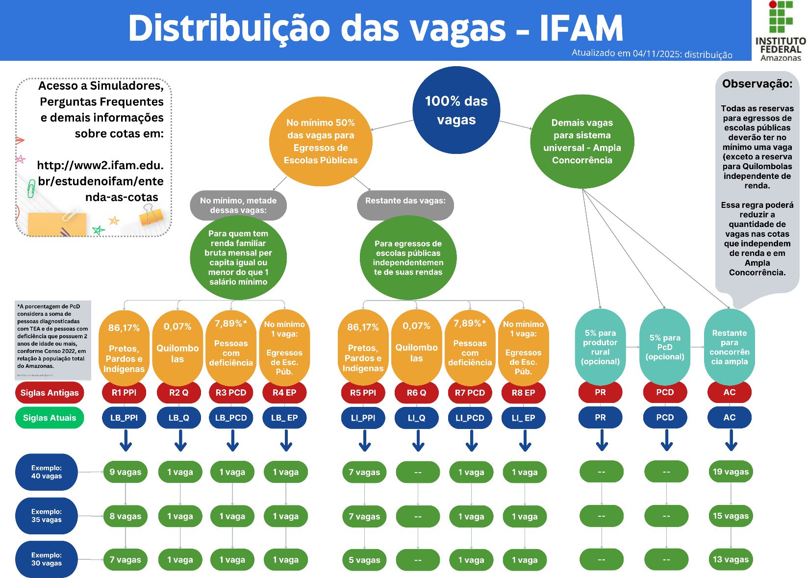 Observação: As porcentagens de 86,17% (PPI) e 7,89% (PCD) utilizadas nessas cotas são baseadas no percentual da população do Amazonas, conforme o Censo de 2022.