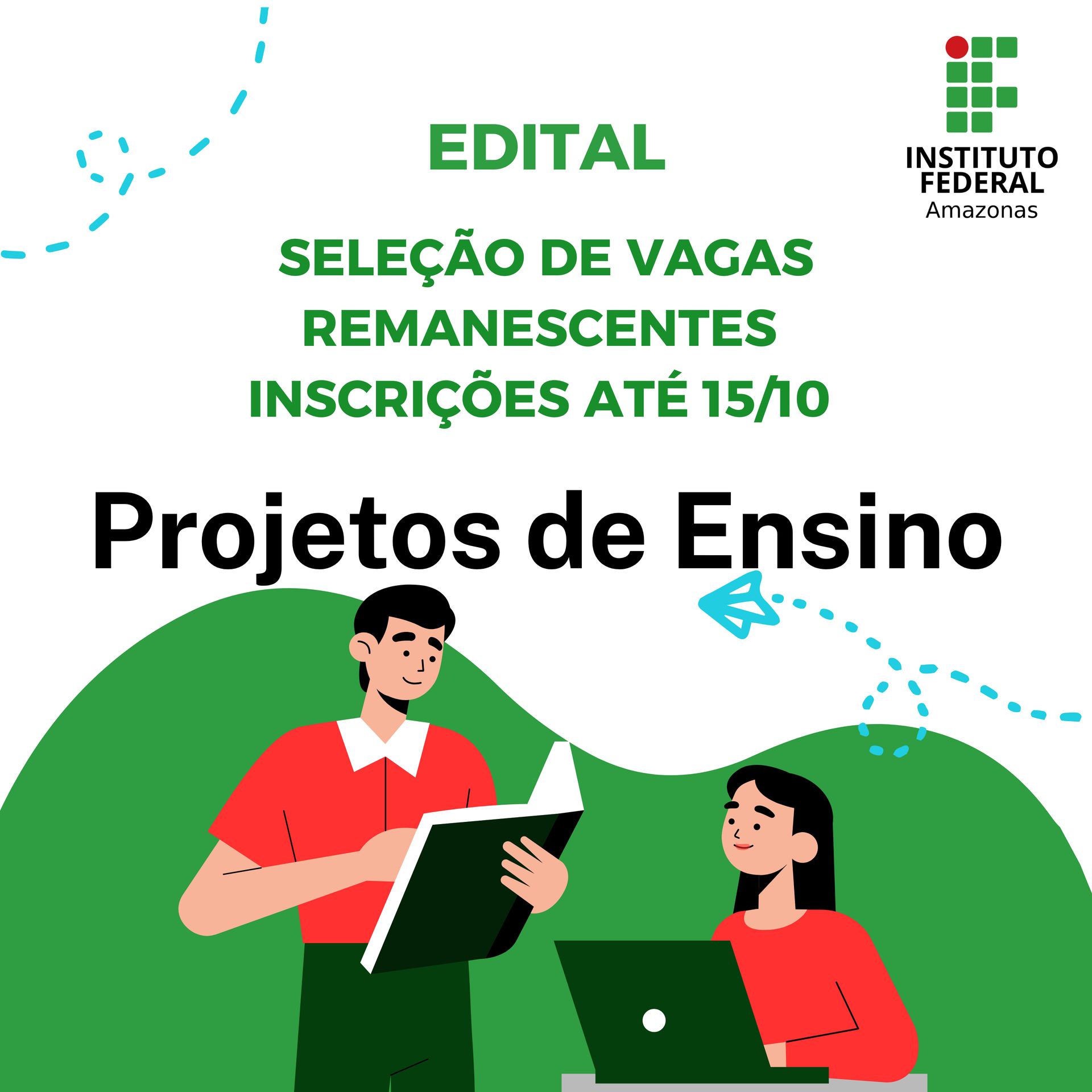 O Instituto Federal de Educação, Ciência e Tecnologia do Amazonas (IFAM) anuncia a abertura das inscrições para a SELEÇÃO DAS VAGAS REMANESCENTES DE PROJETOS DE ENSINO, conforme estabelecido pelo EDITAL Nº 16/2025/PROEN/IFAM. A iniciativa é promovida pela Pró-Reitoria de Ensino, através da Diretoria de Desenvolvimento da Educação Básica e Superior.